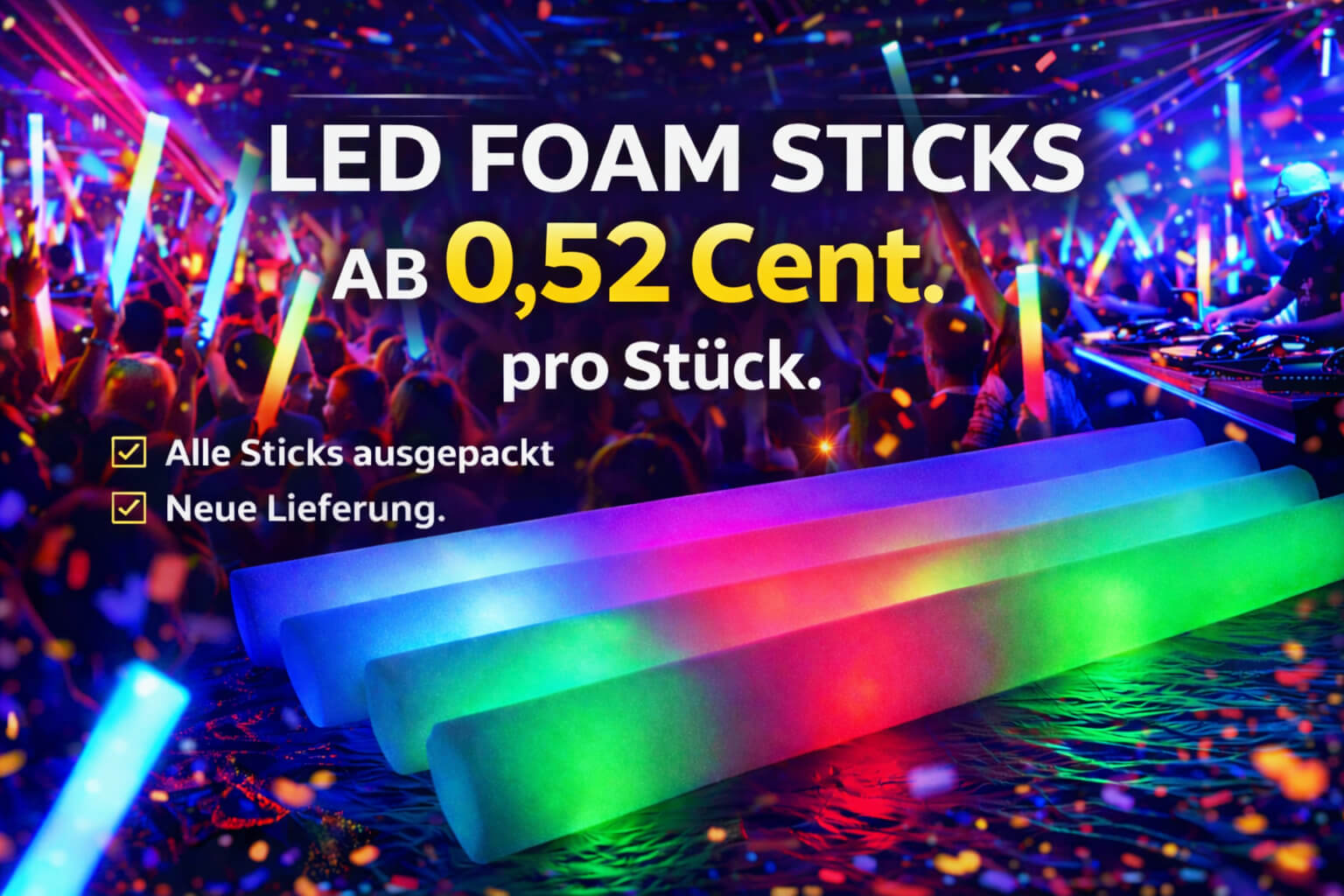 Konfettikanonen & Zubehör | LED-Partyartikel & Leuchtstäbe | Effektvolle Bühnenpyrotechnik