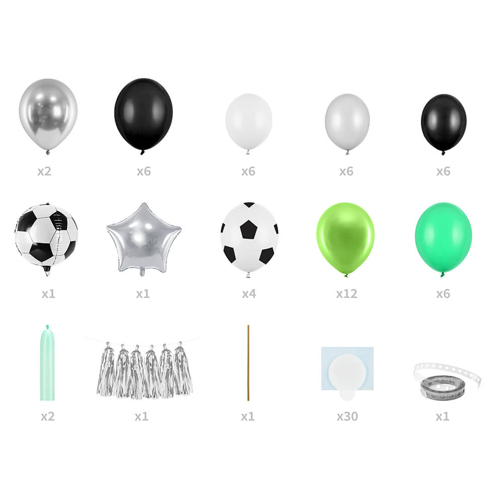 Mit der Ballongirlande „Fußballmix“ wird jeder Kindergeburtstag zu einem echten Heimspiel! Dieses farblich abgestimmte Ballon-Deko-Set im Fußball-Design begeistert kleine Fußballfans und sorgt für eine mitreißende Stadion-Atmosphäre – ganz bequem bei dir zu Hause.