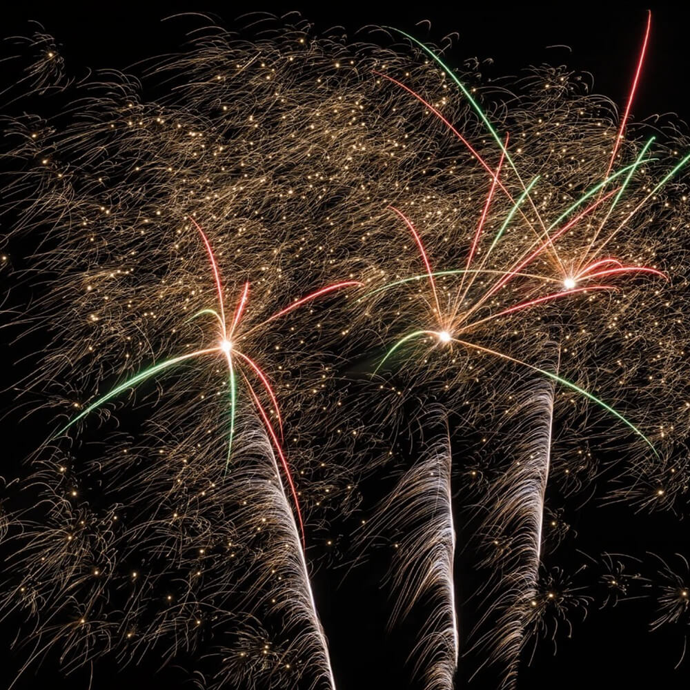 🎇 Eine abwechslungsreiche Effektstern-Batterie mit 6 unterschiedlichen Buketts sorgt für visuelle Tiefe.
