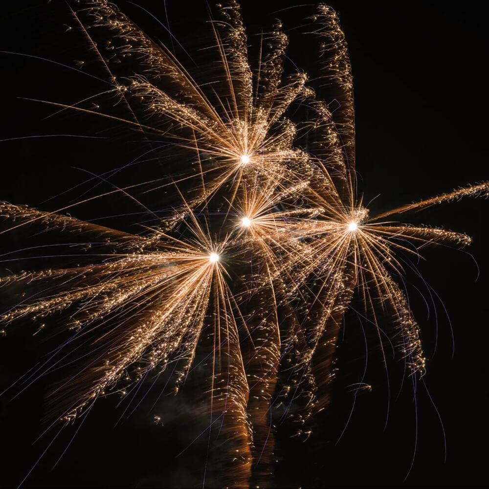 ⚡ Das Feuerwerk endet in einem gigantischen, breit gefächerten Knatterstern-Regen, der für Gänsehaut und Applaus sorgt.