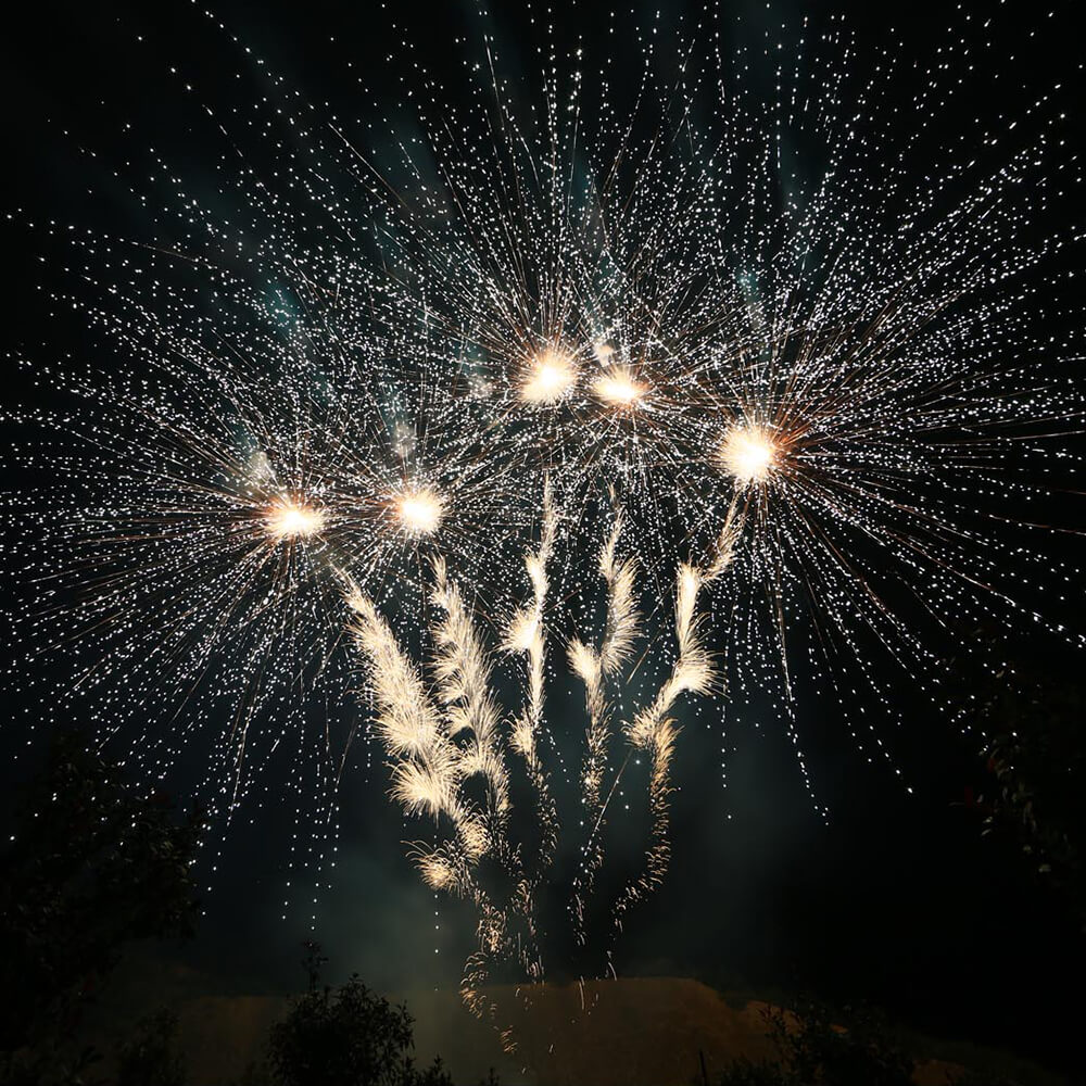 🎇 Bombetten mit leuchtendem Silberschweif steigen gesteppt auf.