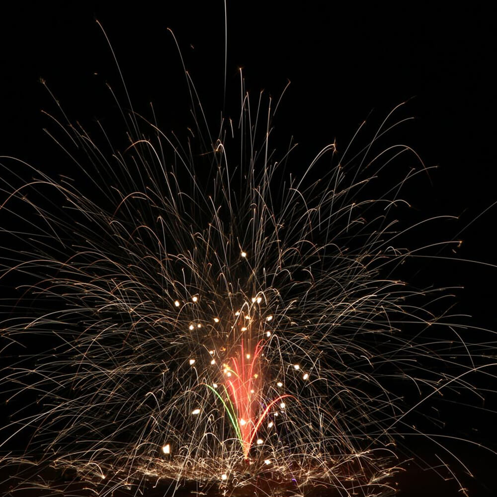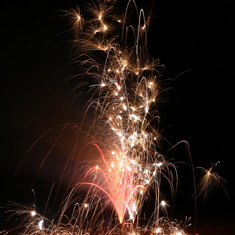 Der Feuerkasten für alle Pyro-Fans mit 4 m Effekthöhe und ca. 90 Sekunden Laufzeit. Mit 4 Verwandlungs-Fontänen , weißen Blinksternen, Goldregen, Cracklingspilzen, Silberchrysanthemen, Knatterkronen und bunten Sternen begeistert er alle Feuer-Freunde.