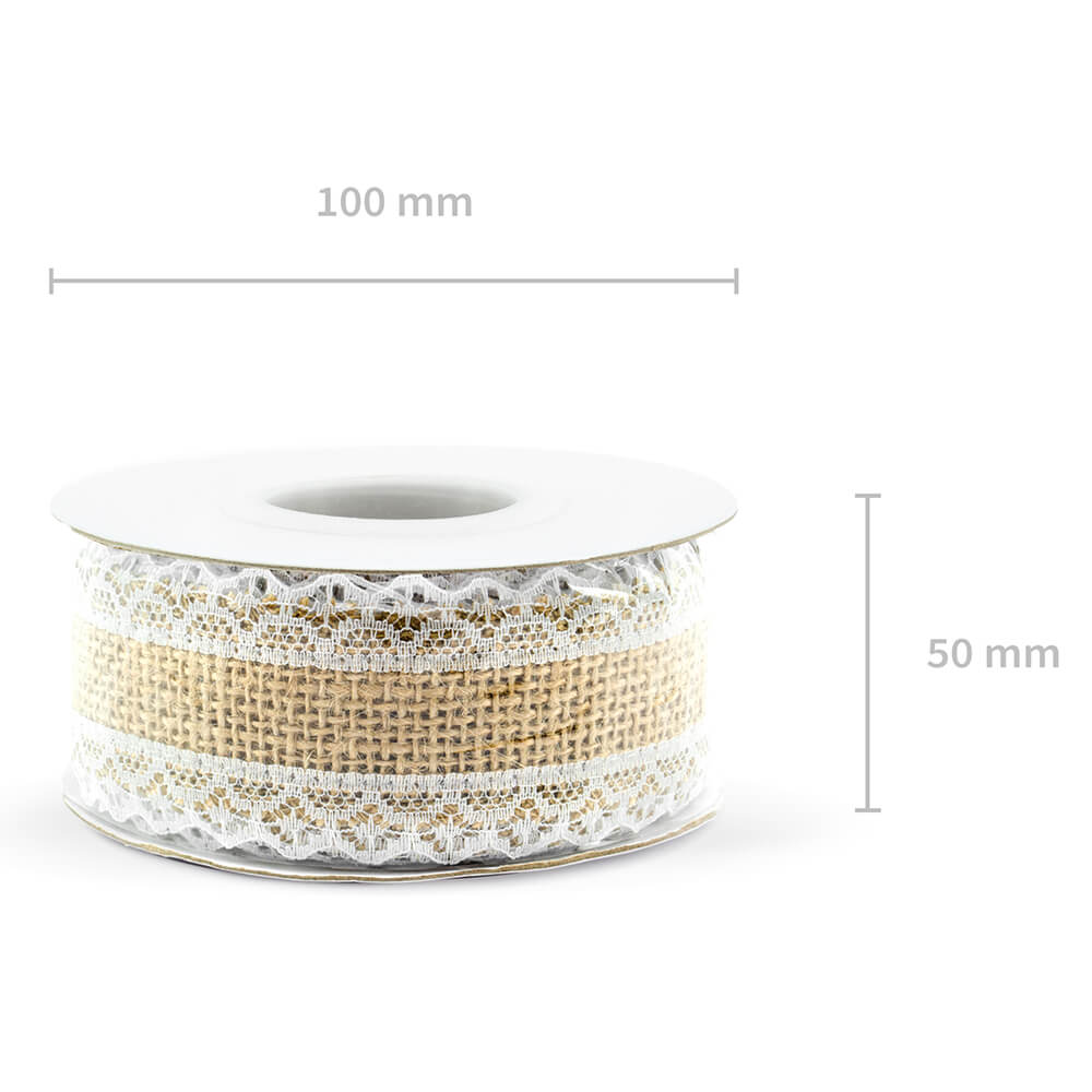 Dieses Juteband mit Spitze bringt einen Hauch von Natur und Eleganz in jede Dekoration – das perfekte Accessoire für Hochzeiten, feierliche Anlässe oder kreative DIY-Projekte.
