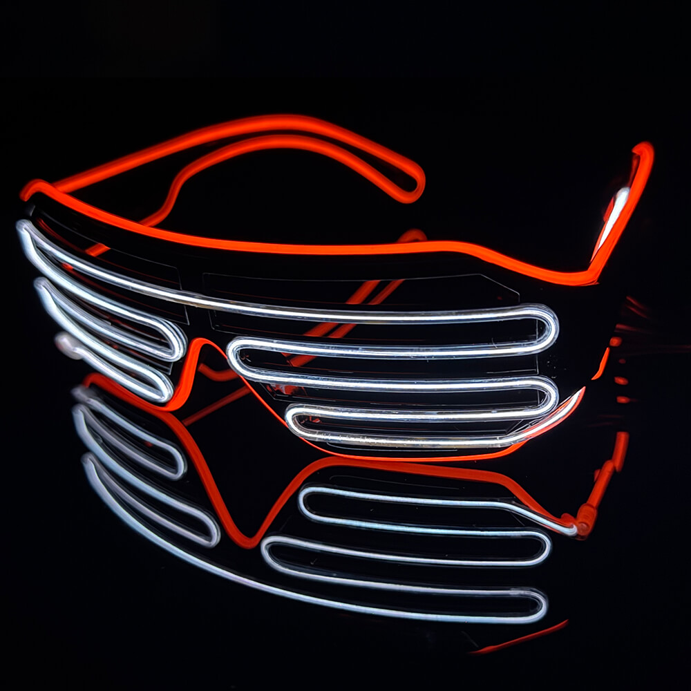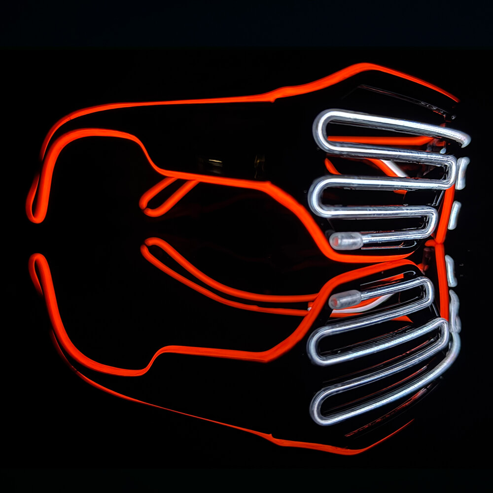 1 Stück - BLINXS EL-Wire Neon-Brille "Shutter" mit EL-Draht in Rot und Weiß