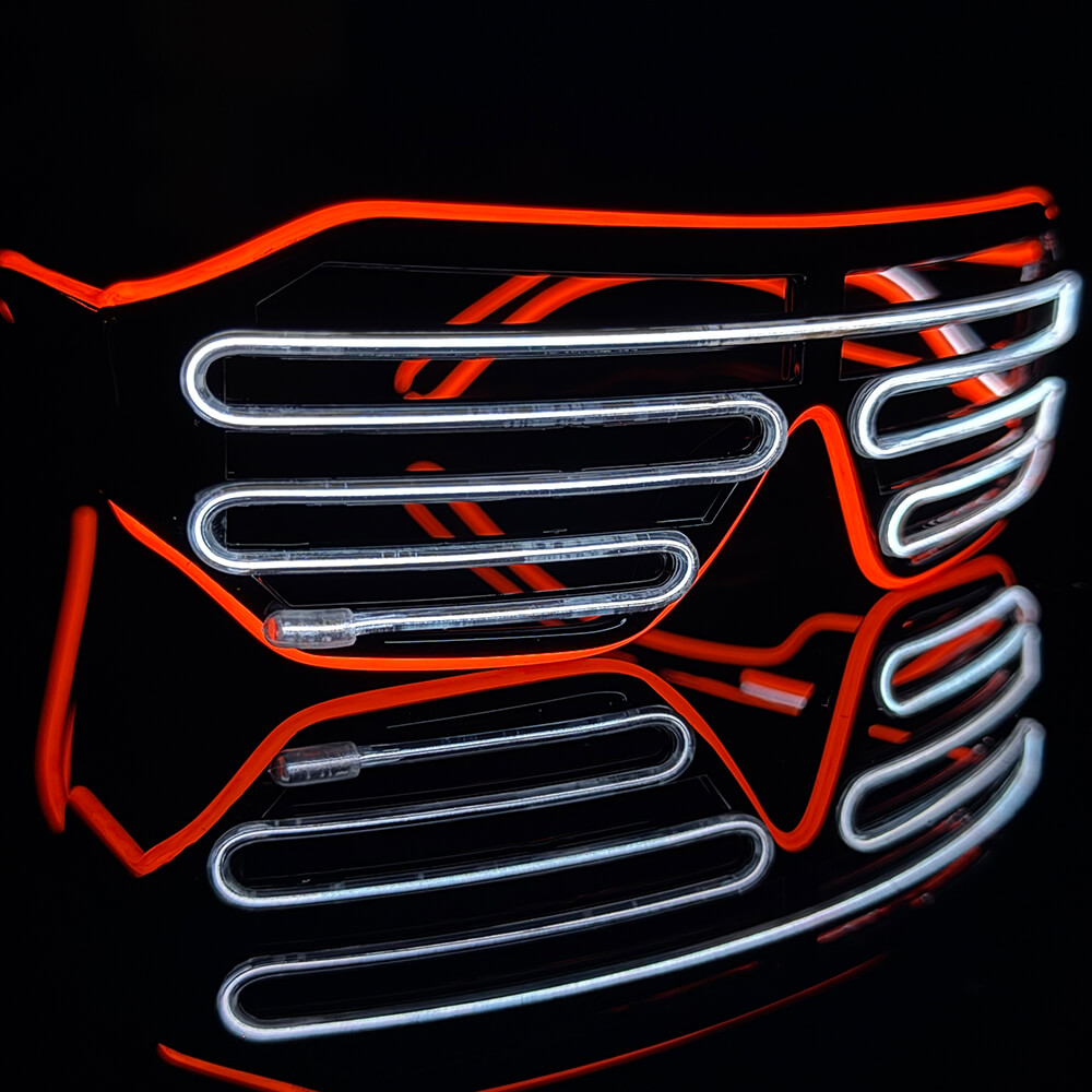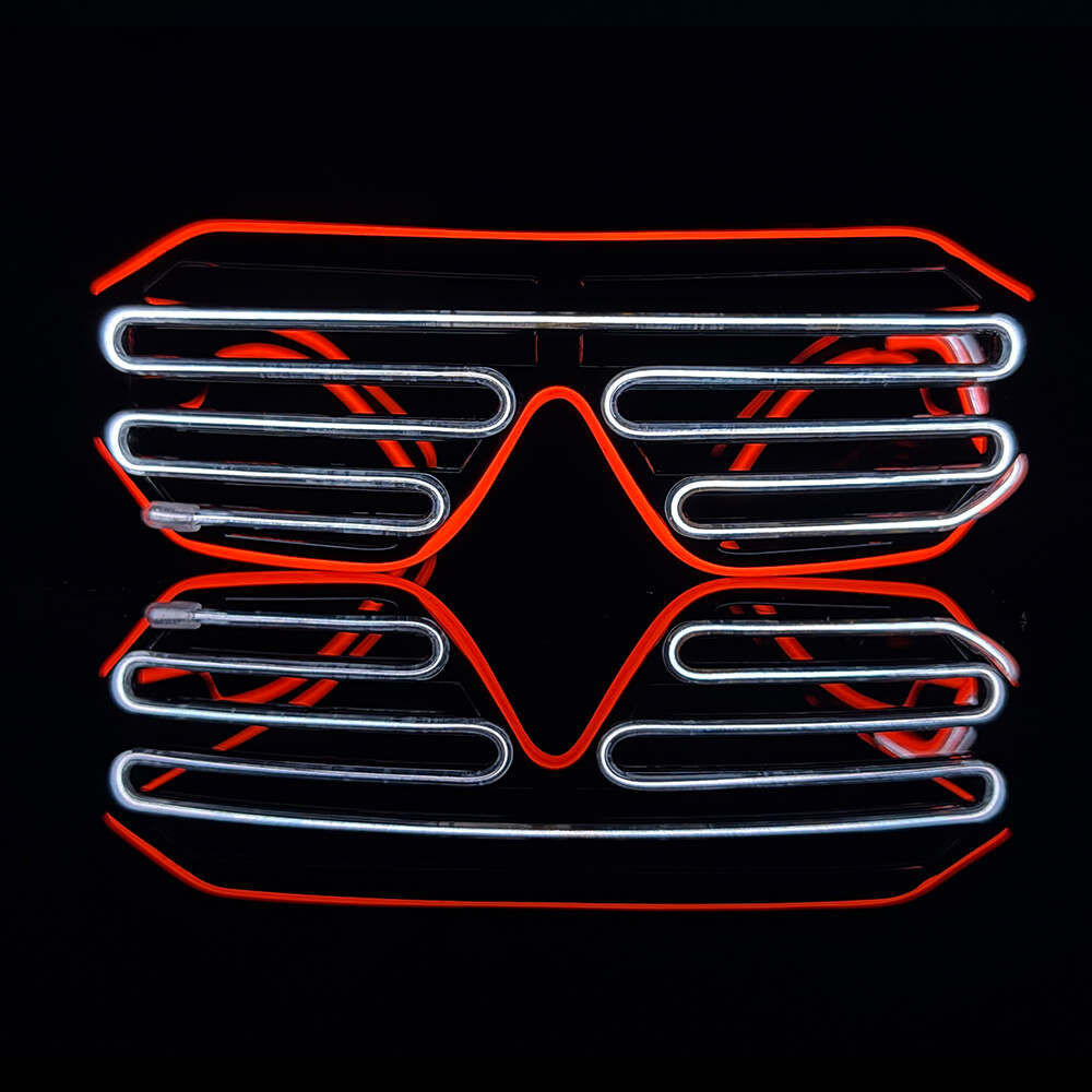 Die BLINXS EL-Wire Neon-Brille "Shutter" ist eine stylische Trendbrille - zwar ohne Gläßer aber dafür mit leuchtenden Gittern. Die coole Brille ist mit leuchtendem EL Schlauch in Rot und Weß gepimmt.