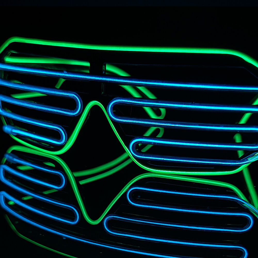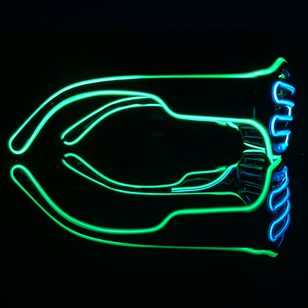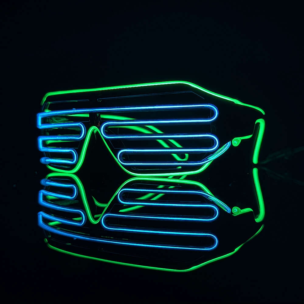 1 Stück - BLINXS EL-Wire Neon-Brille "Shutter" mit EL-Draht in blau und Grün